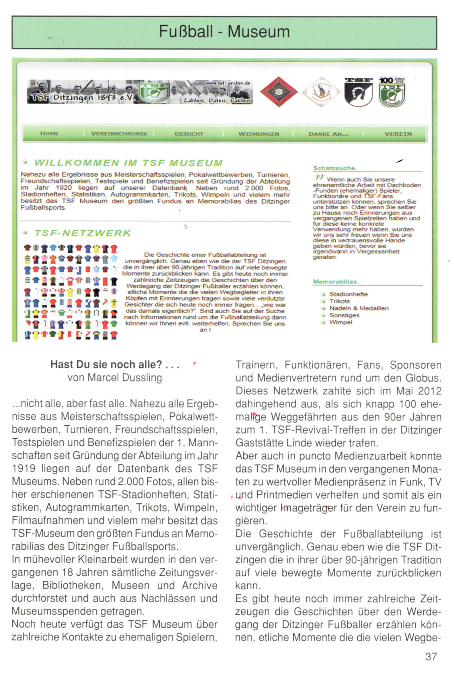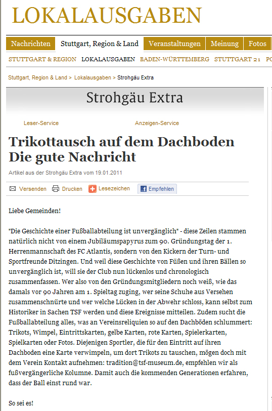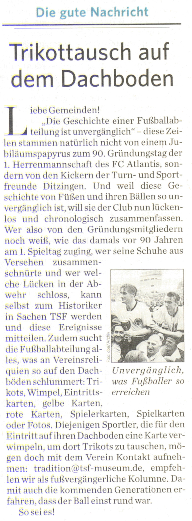 auch Sie unsere ehrenamtliche Arbeit mit Dachboden-Funden (ehemaliger) Spieler, Funktionäre und TSF-Fans unterstützen können, sprechen