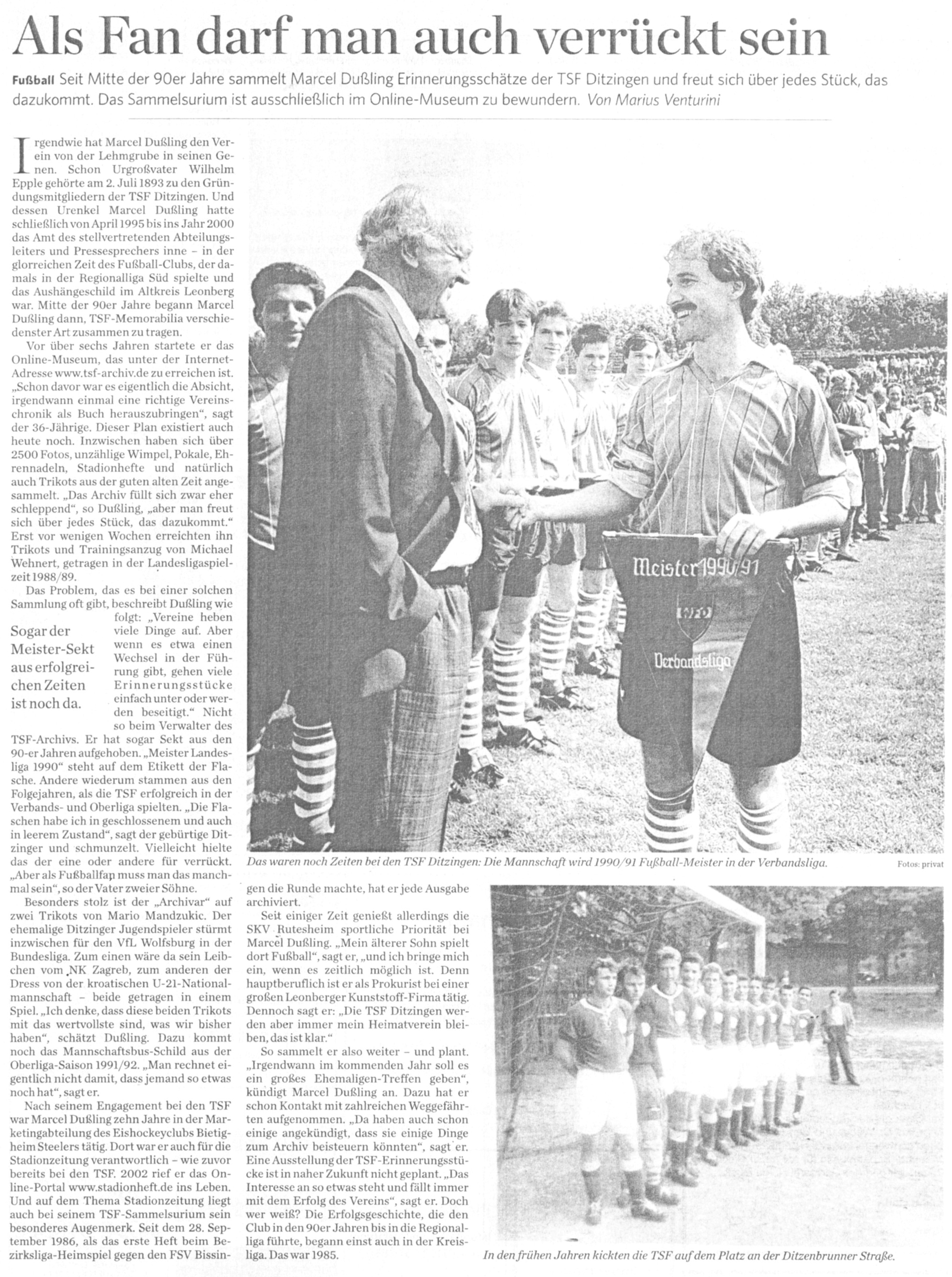 ist unvergänglich. Genau eben wie die der TSF Ditzingen die in ihrer über 100-jährigen
